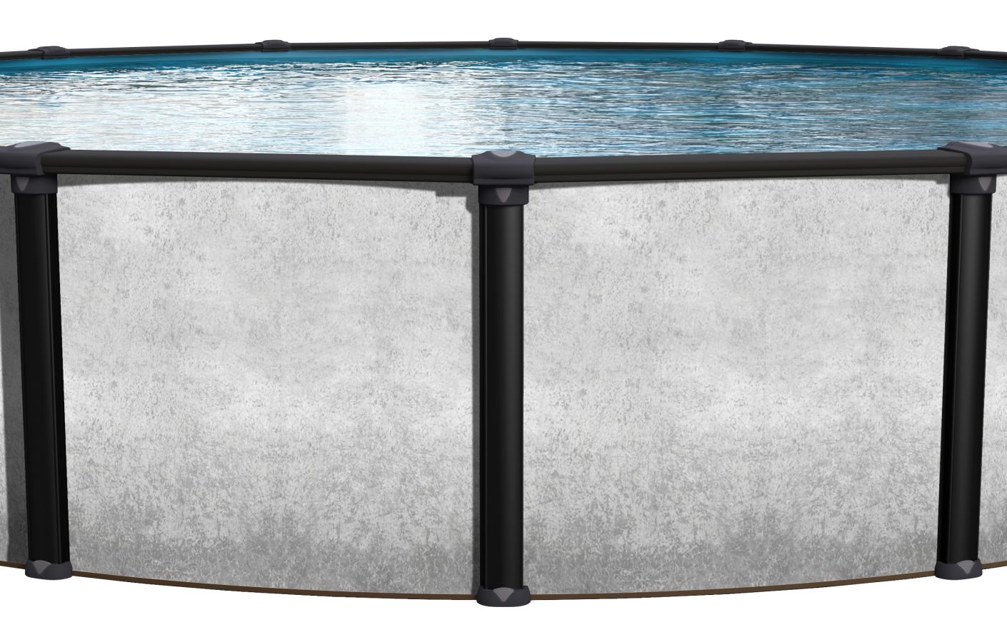 This pool features a sleek, modern design with clean lines and a brushed black wood finish, built to stand the test of time. Its understated, classic concrete-style wall pairs seamlessly with the steel structure—an affordable alternative to resin, yet offering exceptional strength and durability.